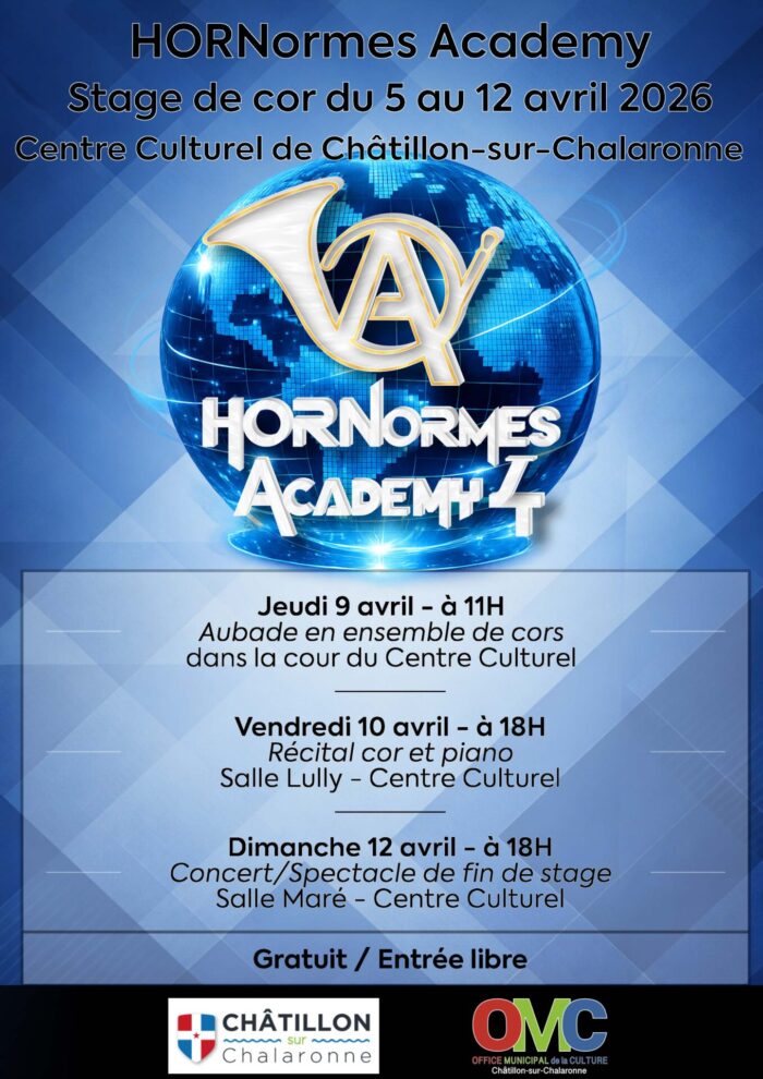 Du 5 au 12 avril 2026, le Centre culturel de Châtillon-sur-Chalaronne vibrera au son du cor à l’occasion de la HORNnormes Academy. Ce stage intensif réunira élèves, amateurs passionnés et musiciens confirmés pour une semaine placée sous le signe du perfectionnement et du partage musical.